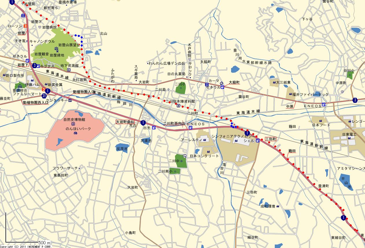 | 新居 - 二川 地図→①弁天島-新居町 ②新居町-潮見坂 ③潮見坂-一里山 ④一里山-二川 |