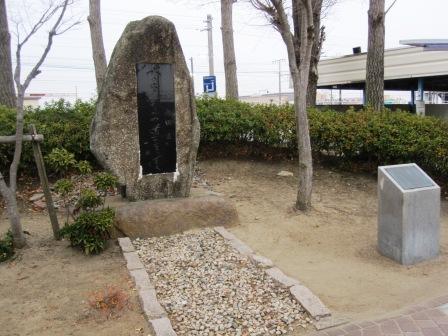 | 新居町駅を下りてすぐ西にある小公園に種田山頭火(さんとうか)の歌碑がある。 昭和14年の2度目の遠州路の旅で 浜名街道を詠んだ句 「水のまんなかの道がまっすぐ」 山頭火(明治15-1882~昭和15-1940)は、井泉水に師事し、自由律俳句の著名な俳人。 公園を下りて、国道1号は左に分岐するが、真っ直ぐ新居関所に向かう。 |