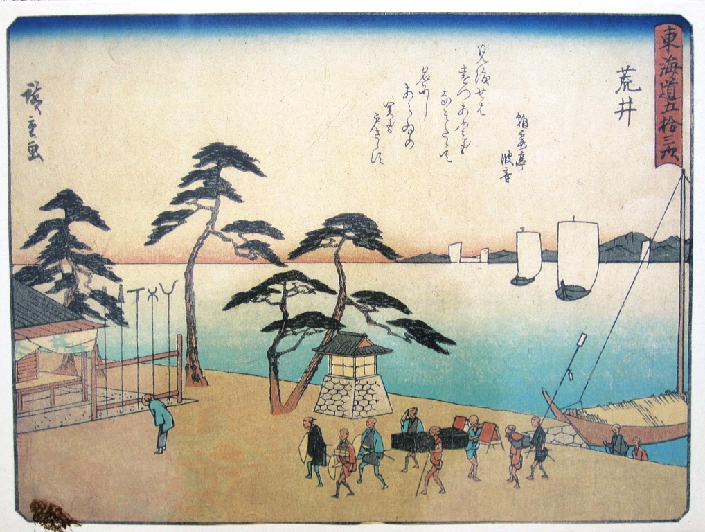 新居宿の規模は、本陣3、旅籠26、人口3474(天保14年(1843))であった。 新井宿のうなぎの蒲焼は、丸子のとろろ汁、桑名の焼き蛤とともに東海道の三台名物の一つであった。 |