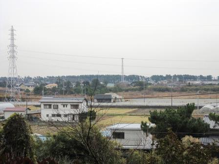 | 旧街道は緩やかな上り坂で山裾に沿って進 左手には田畑の先に海岸沿いの松林と遠州灘がみえる。 紅葉寺の石段から海岸方面の眺め→ |