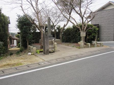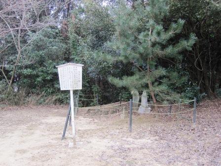 | 坂を上って左へカーブする所に、右から合流する山道があり、右へ少しいくと、石碑と説明板がある。 文明8年(1476) 駿河守今川義忠を葬った上に植えられた松で、昔から枝を一本折っても「オコリ」をふるったと恐れられていた松という。切株の所に新しく小さな松が植えられている。 |