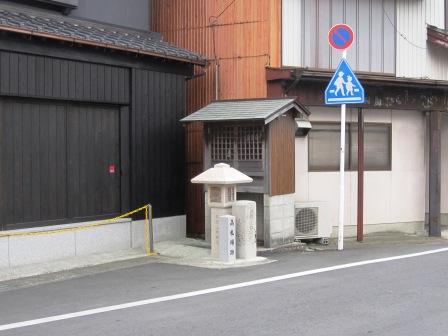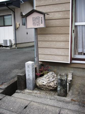 | 大岩寺から100mほど先の右側の民家前に石柱がある。 二川村が運営する東問屋場と、大岩村の運営していた西問屋場がある。 |