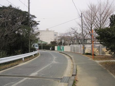 旧道はこの先の白須賀中学校の敷地を通っていたという。 |