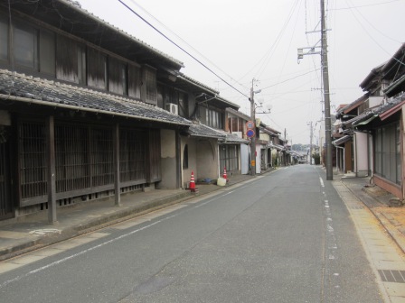 小さな宿場だったので、大名行列は素通りするものが多かったという。(例外:池田綱政) 右側に本陣跡の石柱と説明板がある。 |