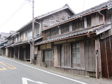 街道の両側3ヶ所に槙の木の防火林が築かれ、一部が残っている。 火事の延焼を食い止める為で、常緑樹で火に強い槙で、樹齢200年以上という。 |