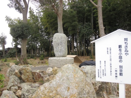 ここは、織田信長が武田勝頼を滅ぼして尾張へ帰る時、徳川家康が茶亭を新築して、信長をもてなした所といわれる。 |