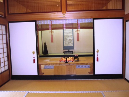 本陣は、馬場家から市に寄付され、残されていた享保年間(1716~36)の表門、宝暦年間(1751~64)建築の主屋などが改修され、書院棟などが復元され平成3年に ←上段の間 |