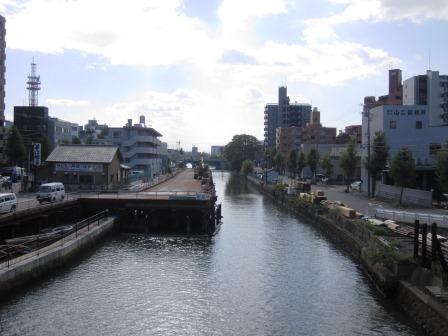 ここから、岩塚→万場→神守→佐屋の宿場に向かう。間もなく堀川に架かる尾頭橋である。 |