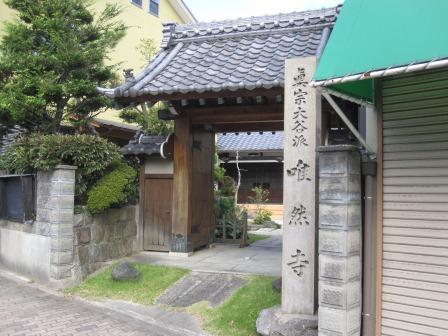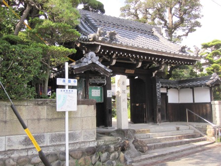熱田神宮の北西にあたる歩道沿いの山門脇に説明板があるが本堂・境内などはよくわからない。この地は平安時代末期、熱田大宮司藤原氏の別邸があったところで、藤原季範の娘 由良御前は源義朝の正室となり、久安元年(1147)熱田の実家に帰り、この別邸で頼朝を生んだといわれる。 享保2年(1529)その跡地に誓願寺が建てられた。 |