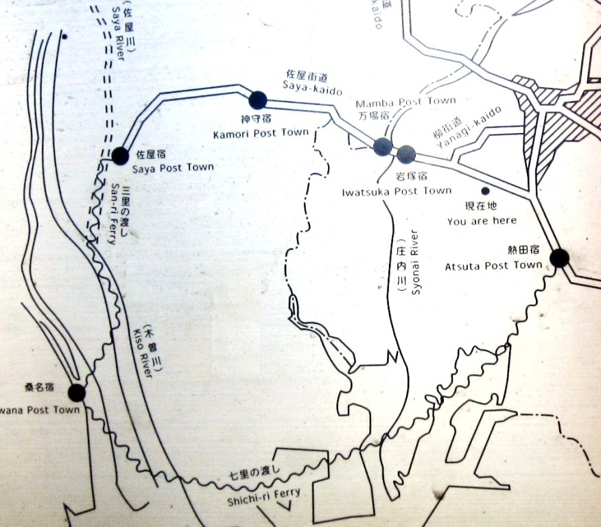 | 熱田(宮宿)- 津島 ・・・旧東海道の脇往還=佐屋街道をゆく(その1) 地図→①神宮前-烏森 ②烏森-万場 ③万場-神守 ④神守-日比野 |