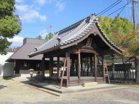 八幡社の囲いのない拝殿の奥にある本殿 は以前は茅葺だったようだ。隣が光明寺である。 |