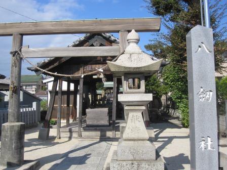 右に緩やかにカーブする道をしばらく進み、、三叉路で東西に走るバス道路に合流した先に八釼社がある。熱田神宮の第一摂社の八剣宮を勧請したものという。 福田川を渡り 七宝町に入る。 福田川→ |