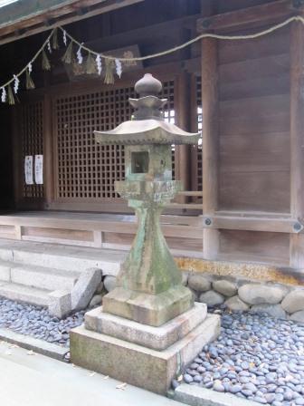 ![]() 少し先の穂歳神社には、拝殿と幣殿の間に、永代常燈明 宝暦8年(1758)寅六月造之 ときざまれた常夜燈がある。 |