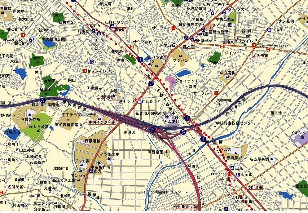 | 逢妻川を渡ると刈谷市に入る。しばらくすると、国道1号に合流する。 | |||