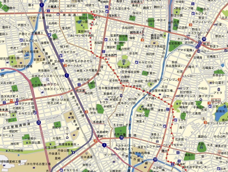 | 知立(池鯉鮒宿) - 熱田神宮前(宮宿) 地図→①知立-富士松 ②富士松-前後 ③前後-鳴海 ④鳴海-本笠寺 ⑤本笠寺-神宮前 |
