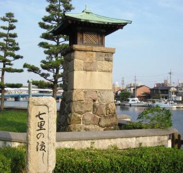 七里の渡し石柱の先に船着き場が再現されている。 ここから、桑名宿までは、海上渡船である。 < 熱田湊常夜灯>寛永2年(1625)尾張藩の家老で犬山城主成瀬正房(正虎)が父・正成の遺命を受けて 正徳寺(ここから北に100m程の場所)の隣に建立し、その後現在地に移転した。今のものは、昭和30年復元されたもの。 ![]() <時の鐘> 延宝4年(1676)尾張藩主第2代徳川光友の命により蔵福寺(熱田神宮の南)に設置された。戦災で焼失したが、鐘楼「は昭和58年に公園内に復元された。(鐘はそのまま蔵福寺に残っている |
