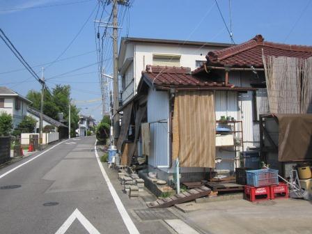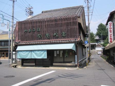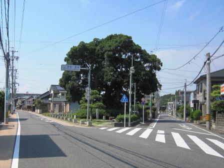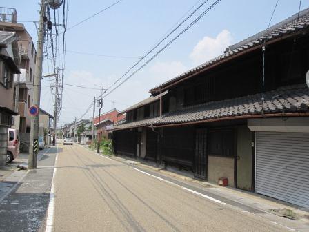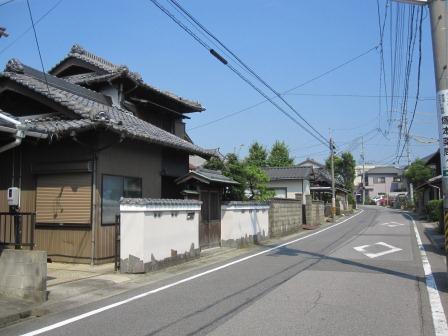左側には 大きな長屋門のある民家がある 。このあたりから国道1号線と並行して進む静かな道が続き、所どころに古い軒先のある民家が点在する。ゆっくりとした時が流れる雰囲気で、暑さも忘れるぐらいである。 |