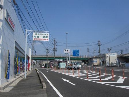 すぐに伊勢湾岸道をくぐり国道と合流する。 数百m先で、阿野一里塚の看板を見ながら、左に分岐する。 |