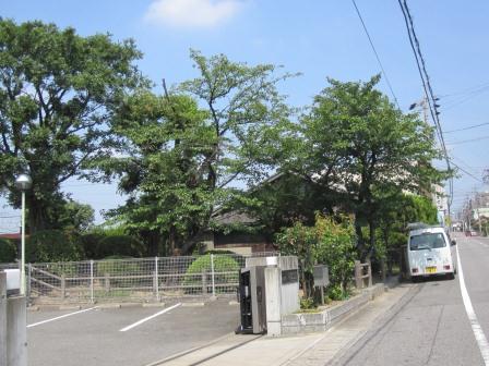 緩やかな坂の先に大きな松の木が見える。豊明小の前に説明板があり、「松並木の一本で、市内で数少ない名残の松である。」と大事にしている様子。すぐ先に、「三田皮フ科クリニック」の大きな看板のある建物がある。 江戸時代から続く医者の名家であるという。 |