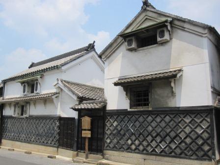 その先に「有松町並み保存地区の説明版」がある。 「天明4年(1784)の大火で、有松村ほとんどが消失した。村の復興にあたり、建物は従来の茅葺を瓦葺にし、壁は塗籠造り、2階の窓は虫籠窓に改め、当時の防火構造で作られた。豪壮な商家が建ち並ぶ現在の町並みは、この時に形成された。 商家の建物は、中2階建切妻平入りで、1階の前面についている半間の土庇の下は、昔は当時の店頭販売の為に大きく開かれていたが、今は格子がついている・・・」 |