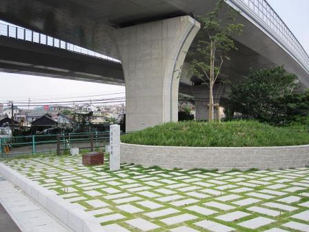 ここから瑞穂区に入り、工場や事業所が並ぶ中を西に向かう。 間もなく松田橋交差点で、歩道橋を渡る。ここからは国道一号線を進むことになる。歩道橋の階段下に小公園があり、松田橋の親柱(大正14年(1925)がある。 この説明板によると、「天正3年(1575)織田信長が4人の道路奉行を置いて領内の道路を整備した際、「浜の道」(熱田~笠寺)が作られ、のちその道は東海道の一部たなり、このあたりは、八丁畷と言われた。井戸田村から浜新開への用水がこの東あたりで南北へ縦断しており、そこに架けられていたのが松田橋である。・・」 |