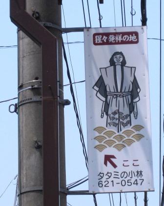 所どころに連子格子の家が残っている。 金剛寺の向かい側に「小林畳店」があり、その電柱に「猩々発祥の地」という看板があり、他にも何か所かに架かっている。この地域で行われるかぶり物の祭りで、2m以上の「猩々人形」が子供を追いかけ、撫でられた子供は病気にならないという。 |