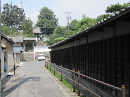 瑞泉寺から宿場の中心に入る枡形まで200m位、古い家並みが残る 。 ![]() ←枡形手前にある安政4年(1857)創業の菓子屋。 ![]() →その脇の道右側の千代倉家の板塀。千代倉家は大地主で酒造家だった。江戸後期に本陣を務めた下郷家の本家という。 |