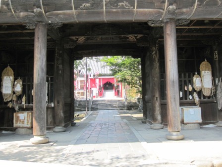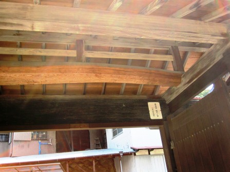100mほど北に、右に向かう細い道があり少し進むと、かっては鎌倉街道沿いにあったという東福院がある。山門の梁には、天正年間の鳴海城の『城門ノ梁』が使われている。(張り紙) |