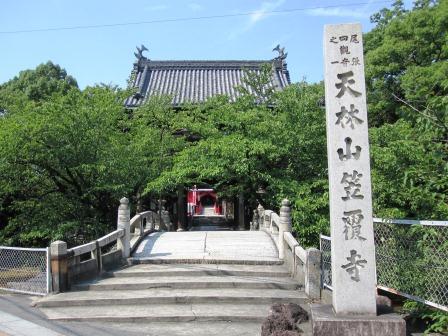 天平8年(736)、呼続(よびつぎ)の浜に流れついた流木に禅光上人が十一面観音像を刻んで安置し、小松寺と称したのが始めといわれる。 その後、延長8年(930)藤原兼平と玉照姫(雨に濡れた本尊の観音に自分の笠をかぶせたという伝説が残る)が、現在地に寺を再興し、「笠覆寺]と名付けたという。 嘉禎4年(1238)阿願上人が再興、現在の堂宇は多くが江戸期(正保~宝暦年間)の再建という。 |