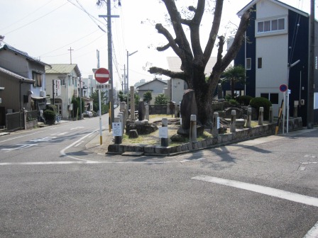 名鉄の前後駅前交差点を過ぎて国道1号線と合流するまで、道標や石碑をみながら1.5kmほど進む。 |