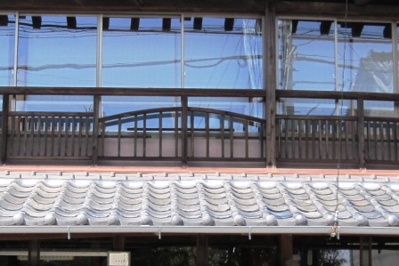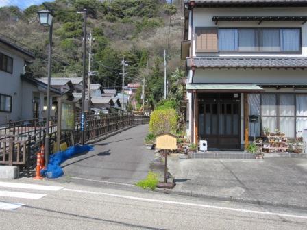 | 川を過ぎると、天保年間(1830〜44)に造られた上旅籠「和泉屋」がある。入口にはいると土間が続き当時の様子を想像できる。使われていた 2階の手すりは、上部が湾曲した櫛型になっている。 |