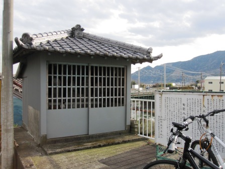嘉永4年(1851)の建立である。 その先の民家の前に明治天皇の休憩の跡の石碑が立つ。 |