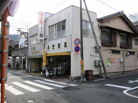 | 由比川をこえたあとも、由緒あふれる街並みが続く。右奥には、天正12年(1584)建立の妙栄寺があり、そこへ行く道の角に、由比名物さとう餅(その後名前をたまご餅に変えた)の製法を引き継いでいる春埜製菓がある。 |