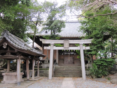 | 道はほぼ直角に左にまがり、 神社由来によると、「祭神は山部赤人で、和歌の宮と称し、富士を歌題にした縁で富士浅間神社の木花開耶姫命を合祀した」という。 境内屋には貞享3年(1686)の笠付庚申塔がある。 |