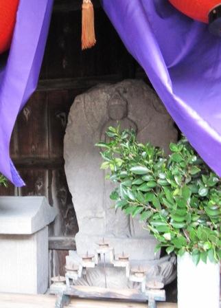 由比川につきあたると入上(いりあげ)地蔵堂がある。由比川の水難者を祀ったという。 |