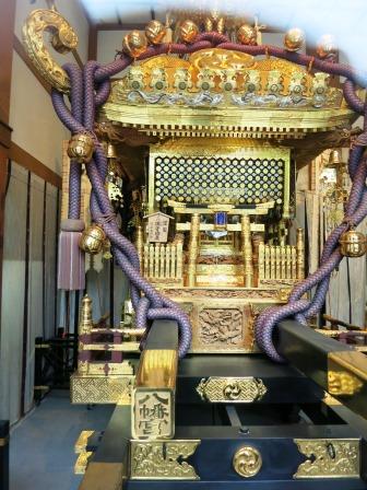 すぐ先が、富岡八幡宮であるが、参道の大鳥居の周りは工事中であった。.すぐ奥 参道の右手には、大関力士碑がたち、向かいには、伊能忠敬の銅像が建つ。 ![]() 門前仲町の一丁目に隠宅を構えていた伊能忠敬は、寛政12年(1800)ここに参拝後、蝦夷地の測量に出た、という。 隣には、大きな神輿の格納庫があり、「深川八幡祭り」の大神輿が納められている。 |
