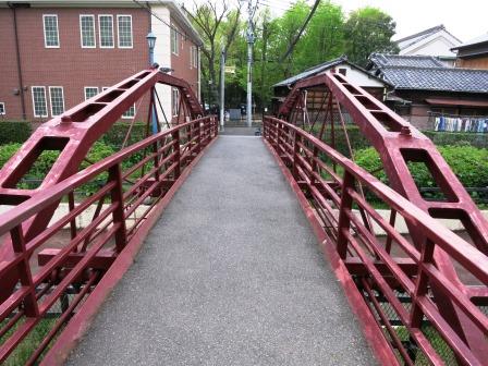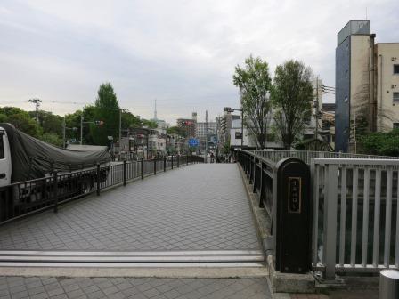 富岡八幡宮の東側に八幡橋がある。 境内裏にある参拝者駐車場から外に出て、横綱力士碑の奥にあたる場所の路地を進むと、細道の上に架かっている。 渡った先に「旧弾正橋(八幡橋)」という説明板がある。 「もと、京橋楓川(もみじがわ)に架けられていた弾正橋で、大震災後新しい橋が架けられたので、この場所に八幡橋として保存されることになった。 この橋は 鋳鉄橋から錬鉄橋にいたる過渡期の鉄橋として、価値の高い橋である。」という。 ≪前回の八丁堀の散歩の時に訪れた弾正橋の、もともと架けられていたものである≫、 西にある深川不動尊まではすぐである。 |