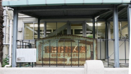 「新大橋は、隅田川に架かる3番目の橋として元禄6年(1693)に架けられた。この橋の架設により江戸市中との交通が便利となり、深川の発展に大きく寄与した。初めは現在地より200m程下流に架けられていたが、明治45年(1912)鉄橋となり現在地に架け替えられた。」(説明文より。![]() 深川神明宮へ行く途中で見つけたが、ここから南東200mほどにある「八名川小学校」の校舎の脇(北側)に、その橋名板・・・志ん於ほはし・・・が残されている。(また 橋の一部は、明治村に移されて保存されている。 |