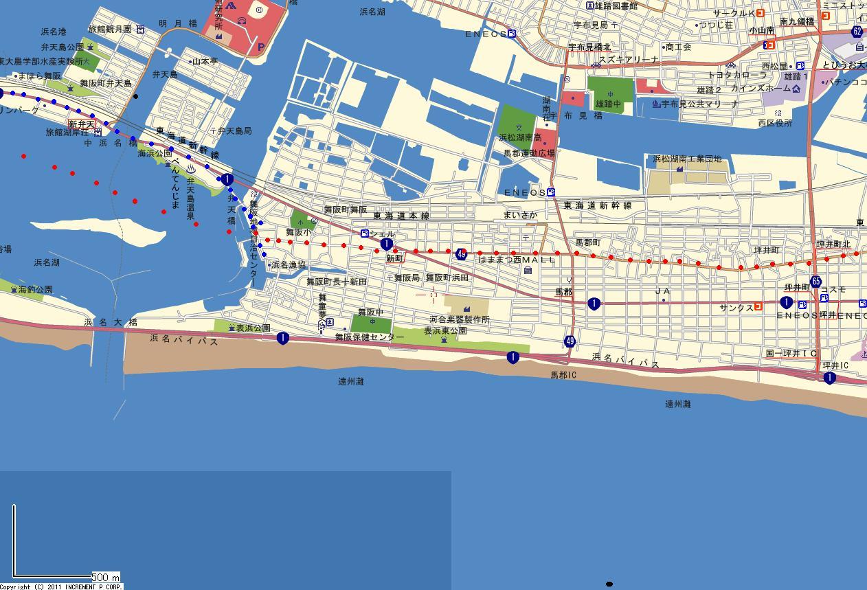 | 浜松 - 新居町 地図→①浜松-高塚 ②高塚-篠原 ③篠原-弁天島 ④弁天島-新居町 |