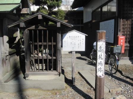 | 高札場跡 境内の端に高札場跡の木杭がある。 |