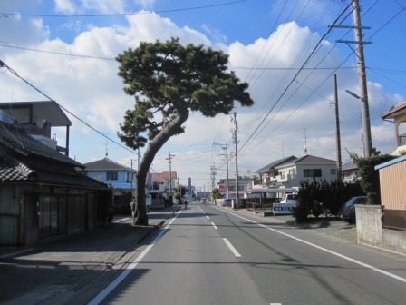 正徳2年(1712)には、先ほど通った東光寺のある馬郡村からこれから行く見附石垣まで1420本の松が植えられていたという。 今は、ここから700mの間で大小340本があり、松並木の外側に歩道が設けられている。 |