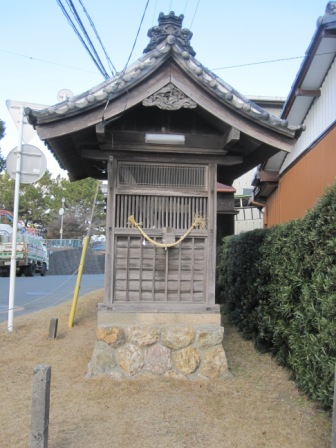 | 今の可美小学校の前に諏訪神社がある。 由緒によると、 その先右側に秋葉山常夜燈がある。 |