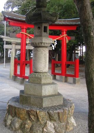 永享12年(1440)伏見稲荷より勧請したとされる。 赤い鳥居の先に、文化13年(1816)の鳥居があり、手前の灯籠には文化2年(1805)と刻まれている。 |
