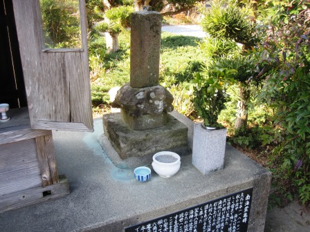 に打ちあげられた亀を葬り、翌年海の安全と豊漁を願い亀型の台座の供養塔を建立したという。 |