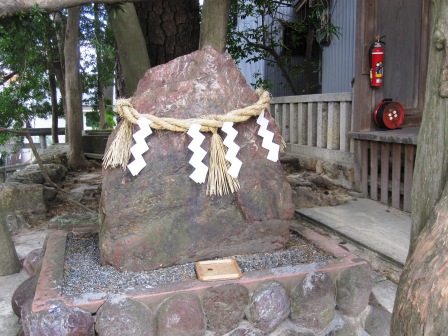 平安時代の延喜式神明帳に記載されている古社である。 その後 明応7年(1498)の地震・津波で消失したが、柳の古木の根元に「岐佐大明神」の祠があった所に社殿を建立したという。 本殿の脇に赤味がかった大きな石がある。 赤石と呼ばれ、「古事記」に、大国主命に致命傷を与えることになった石として登場する、という。 |
