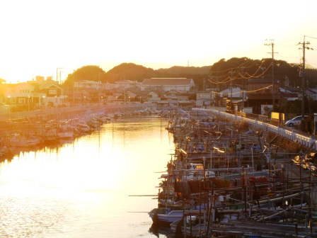 | 新居町駅に戻る。 途中の浜名川にかかる関門橋から眺めた新井関所の方角。 |