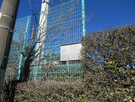500m程続く工場のフェンスの角に日野台一里塚の説明板が、掲げられている。実際の一里塚は、この説明板からから西へ90mほどの地点にあったという。 |