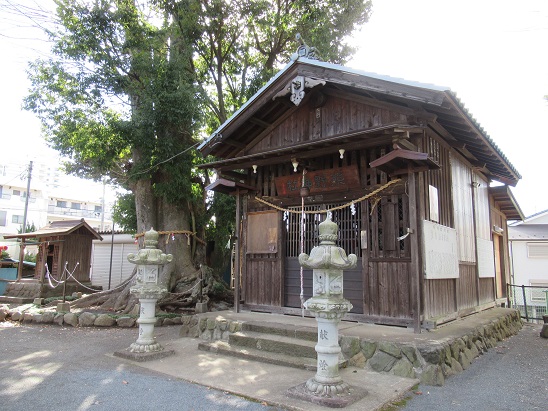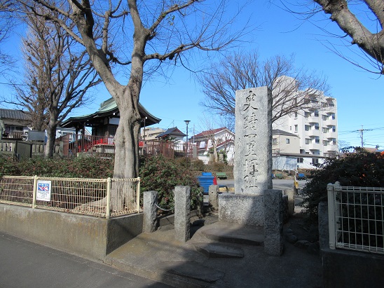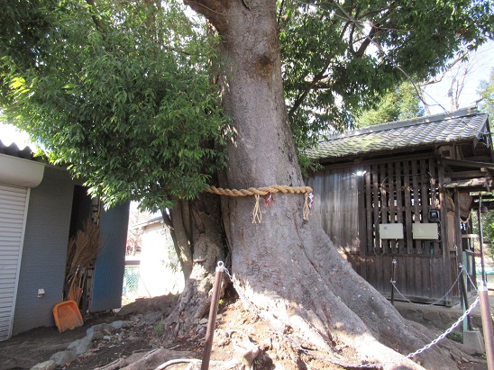国道に合流するとその向かいに熊野神社がある応安(1368)の頃 片倉城主が創建したといわれ、天正元年(1573)北条氏照が再建。 境内には 樫と欅が根本が一緒になって相生の木があり、「縁結びの木」と呼ばれている。 |