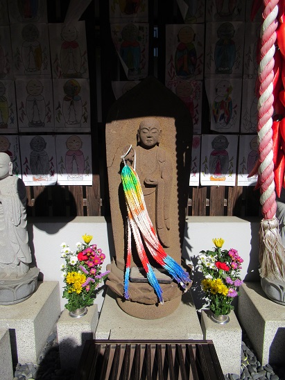 JR中央本線の高架下をくぐるが、下を流れる南浅川に架かる両界橋の脇に 地蔵尊が建っている。この付近の南浅川は、深い渓谷のようで眺めがよい。 |