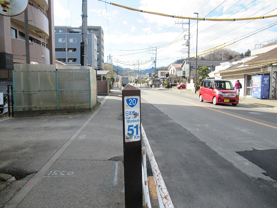 高尾駅前を通過した先で、国道20号線は、日本橋より51kmの地点となる。 |